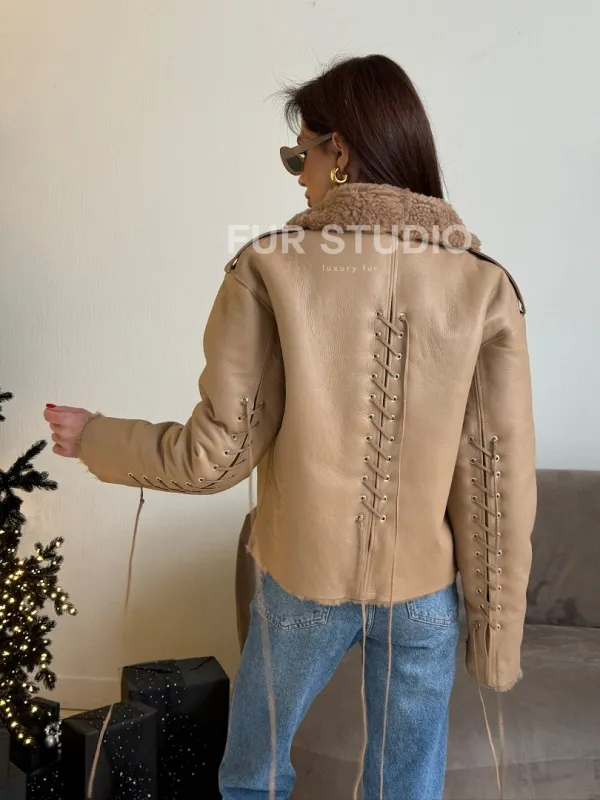 Дубленка - куртка со шнуровкой на спине 100843