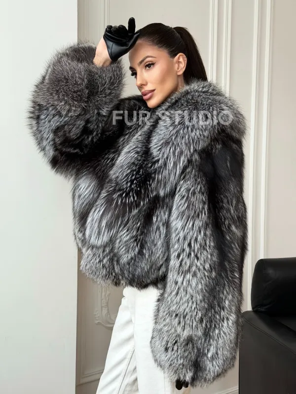 Кроп-шуба из чернобурой лисы 102730
