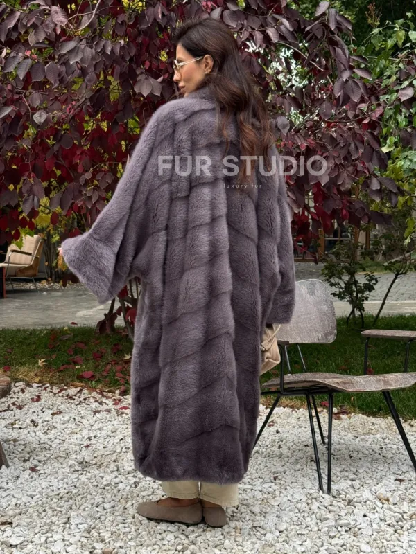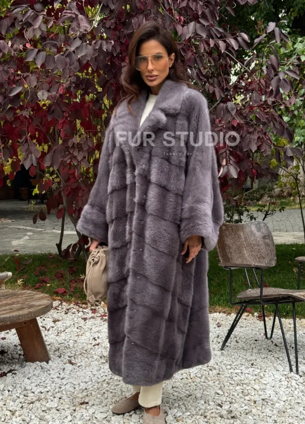 Мех данной шубы аукционная норка , цвет серый. Предлагается в размерах от oversize (42 до 68). Длина модели 120-125 см, что выгодно подчеркивает фигуру девушек. Эта модель идеально подойдет для девушек и женщин, предпочитающих роскошные натуральные меха.