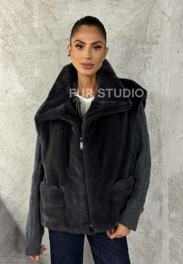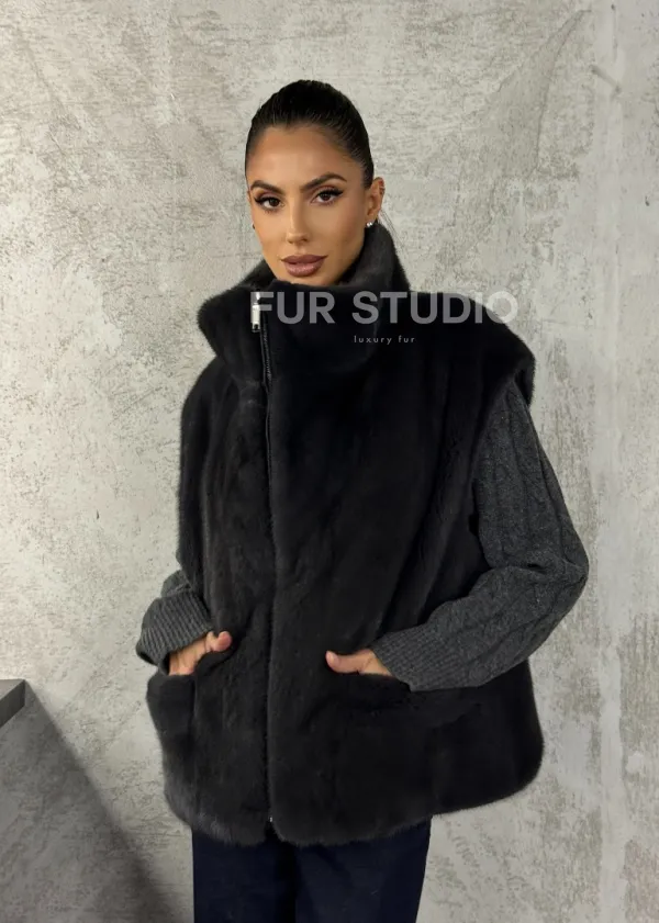 Норковая жилетка - графит 102427