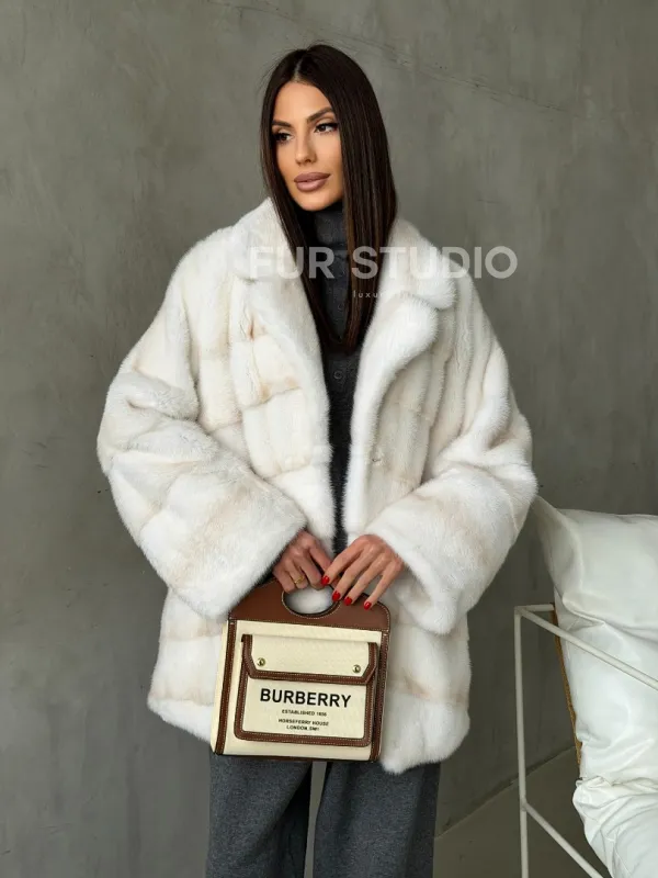 Мех данной шубы аукционная норка, цвет белый. Предлагается в размерах от 42 до 50. Длина модели 70-75 см, что выгодно подчеркивает фигуру девушек. Эта модель идеально подойдет для девушек и женщин, предпочитающих роскошные натуральные меха.
