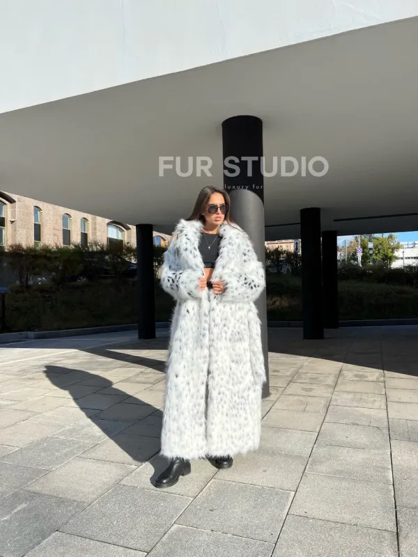 Удлиненная шуба из экомеха под рысь 100294